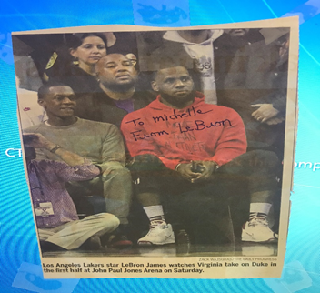 My text message was buzzing like crazy, was it a tornado, a hurricane or some other natural disaster? No, my text messages read “The kings in town” “LeBron’s in Cville”.” Mom LeBron’s at JPJ do something”. Ok let me start from the beginning, I am NOT a LeBron James fan but my son is. He is the King of the King’s fan club. TJ, my son, has followed LeBron since LeBron was in high school. He has collected all types of memorable. Such things as a pair of converse sneakers that were made from LeBron all-star jersey.